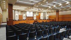 This room has a fully integrated audio/video system, PC, phone conferencing, video streaming, laser projector, and Internet access.